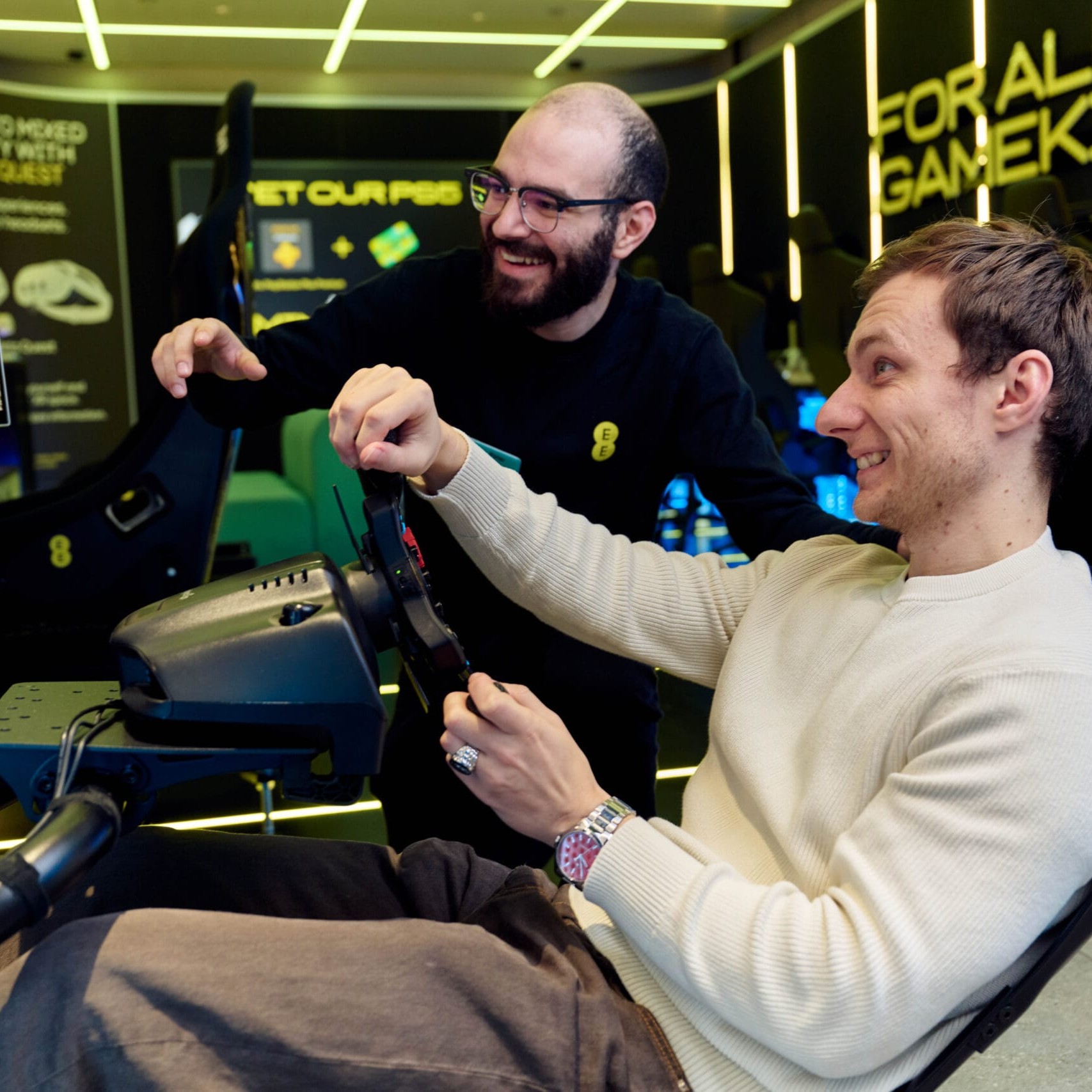 EE has partnered with major brands including Apple TV and Netflix to deliver immersive launches at the EE Studio store. The Squid Game 2 launch featured the iconic piggy bank as its centrepiece, with grabber games and an opportunity to try the new Squid Game modes on Call of Duty: Black Ops 6 within the gaming zone. For the F1 Movie collaboration with Apple TV, customers could win exclusive prizes and experience authentic props from the Brad Pitt Blockbuster with the main focus being on the iconic APXGP car, offering visitors a ataste into the high-octane world of Formula 1 directly to the store.